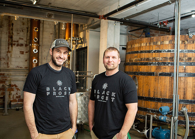 Pictured, left to right: Jace Marti and Nate Gieseke The idea for Black Frost Distilling was born in the middle