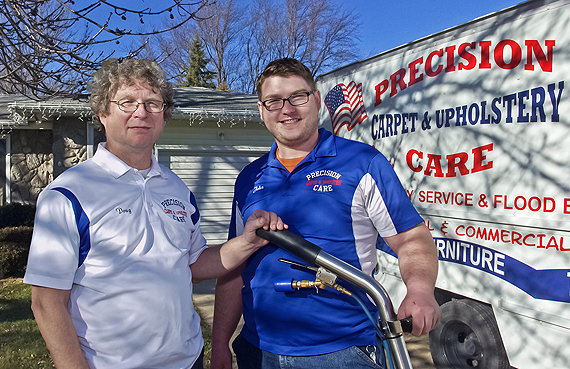 John Elbert’s grandparents owned an eye clinic, his father a transmission business, his uncle a law practice, and now Elbert (right, in photo) has started Precision Carpet & Upholstery at 310 North State. His family hails from Dunnell, which is about as far west as anyone can go in Martin County without being in Jackson County.